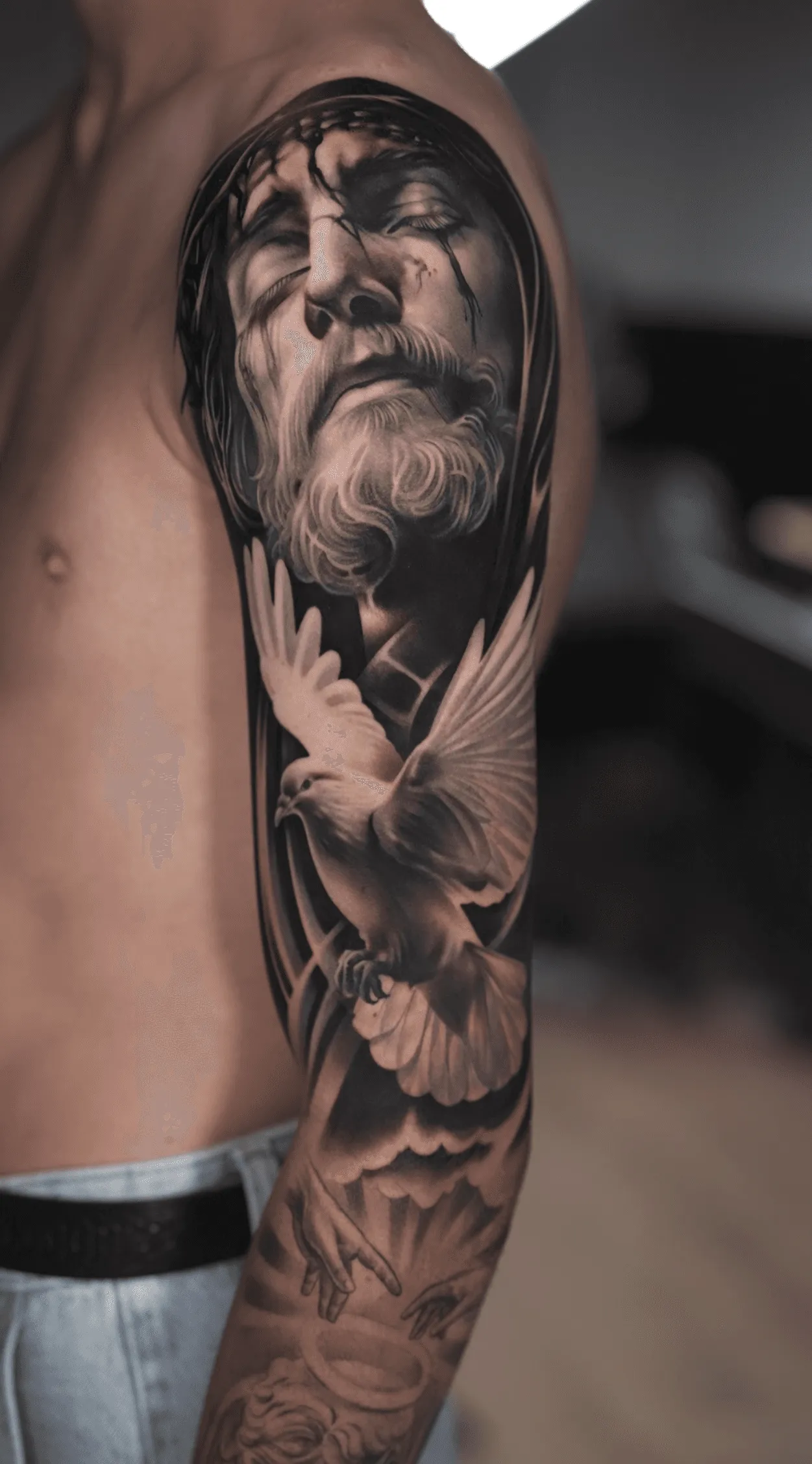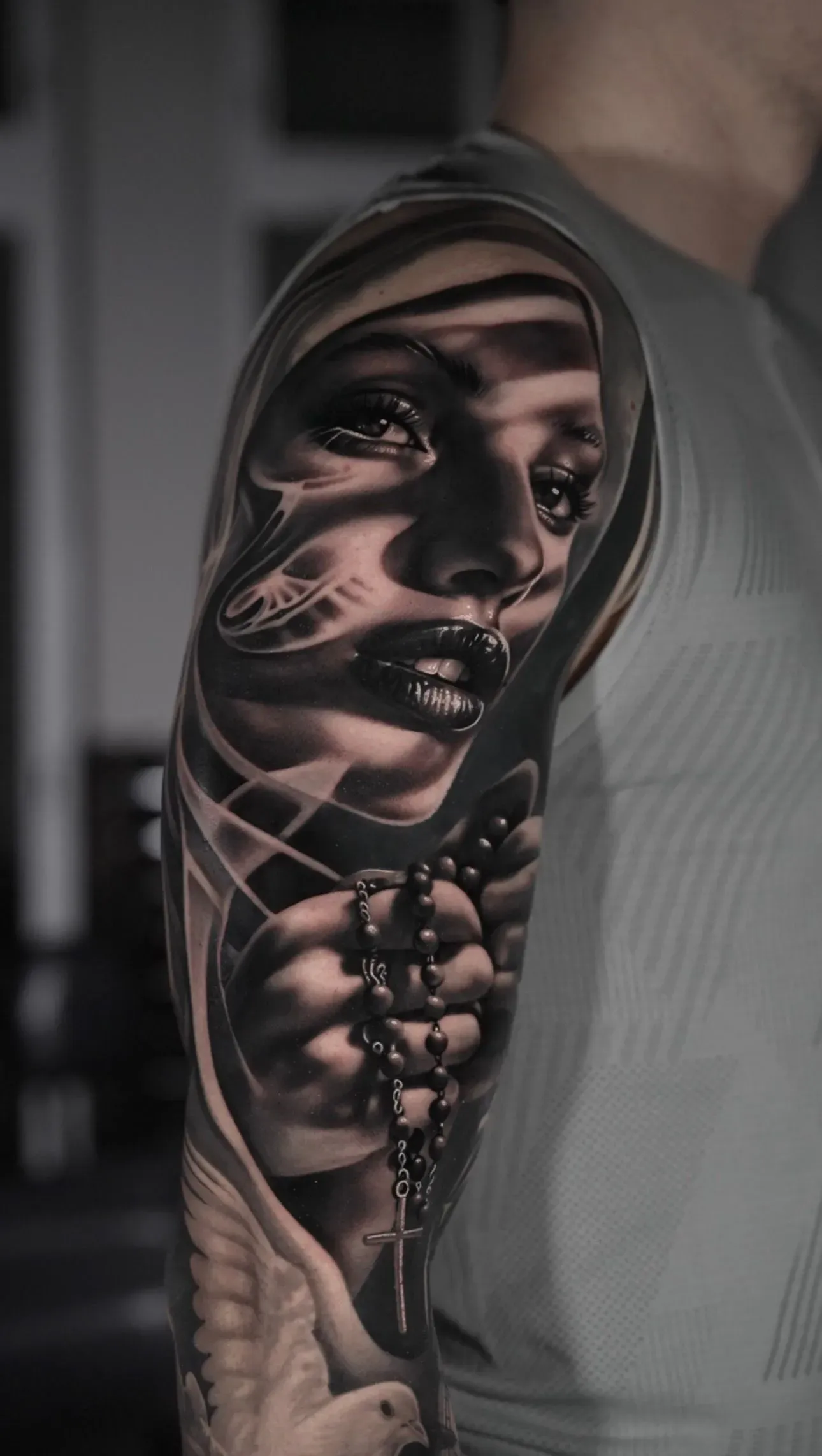 Hey, I am Carles! I focus on highly detailed black and grey realism — strong contrast, depth, clean composition. Every piece is designed to flow with the body and hold its quality over time.