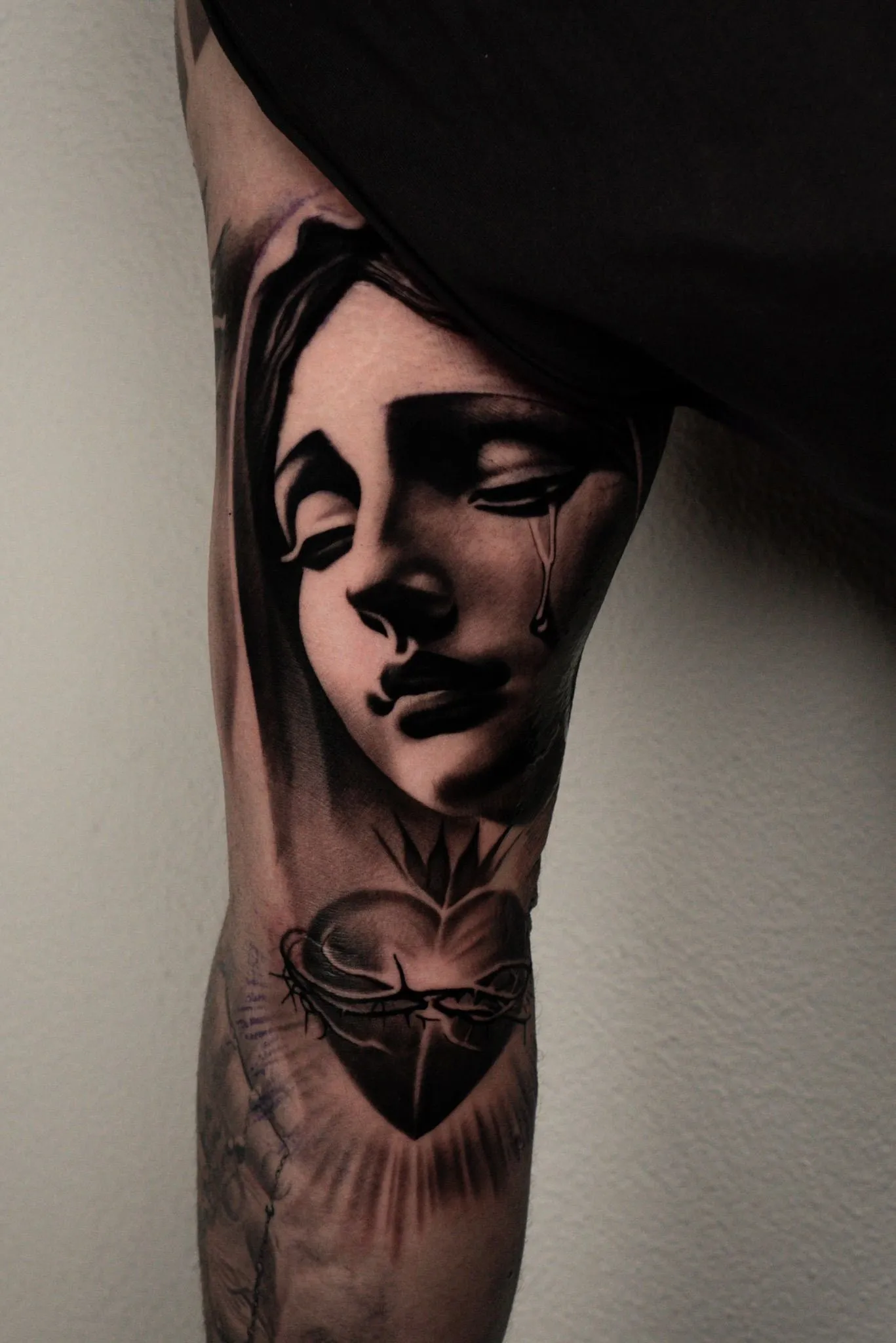 Ich arbeite im Bereich Black & Grey Realismus mit surrealen Elementen. Oft entstehen daraus fließende, zusammenhängende Kompositionen.